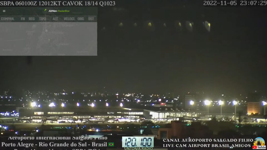 Piloto de avião que sobrevoava Porto Alegre, no Rio Grande do Sul, por volta das 23 horas do sábado, 5, relatou ter avistado objeto voador não identificado (óvni). Tratava-se de luzes que “se cruzavam” ao sul da cidade. A conversa com a controladora de tráfego aéreo foi gravada pela câmera da Central de Controle do Aeroporto Salgado Filho.