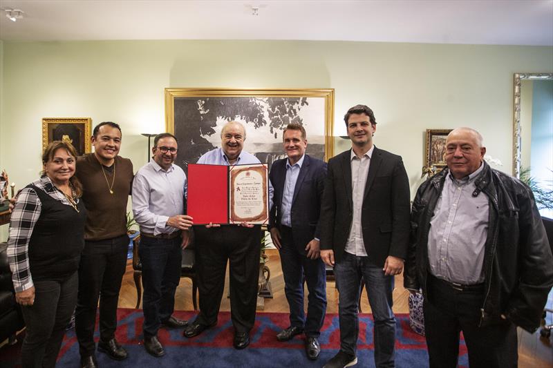 Durante a visita, o presidente da Câmara Municipal de Curitiba, Tico Kusma, entregou uma Moção de Congratulação e Aplauso ao Padre Celso pelo trabalho realizado na cidade.