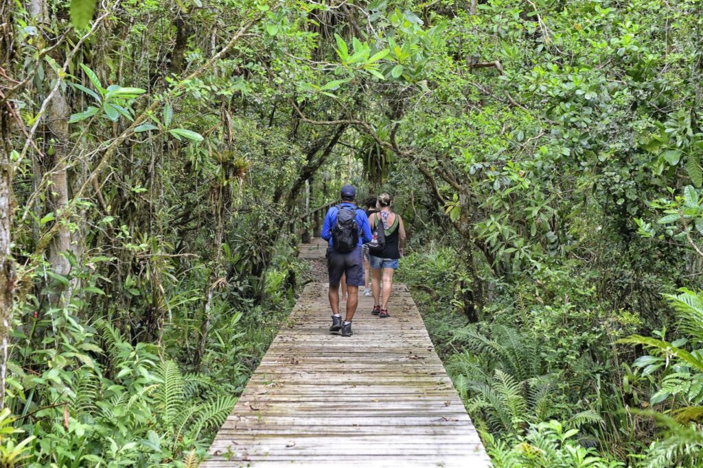 Há muito mais do que balneários convidativos para um banho de sol, mar com água limpa, restinga protegida e areia fofa nos cerca de 100 quilômetros de extensão do Litoral do Paraná. Encravado em Matinhos, a menos de 10 minutos de carro da região central do município pela Rodovia Máximo Jamur, a PR-412, o Parque Estadual Rio da Onça é um convite aos amantes da natureza.