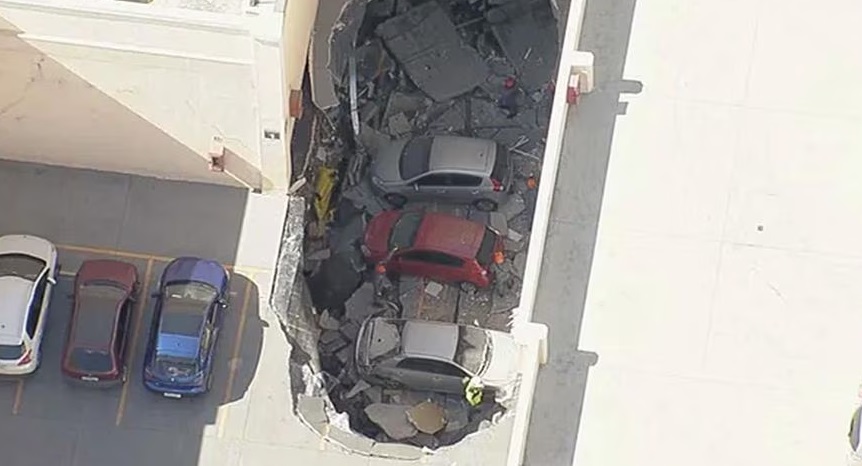 Ainda segundo apuração da polícia, pelo menos três veículos caíram quando o piso cedeu. “Ouviu-se um estalo antes da queda e imediatamente isolaram o local, motivo pelo qual aparentemente não há vítimas de lesão”, afirma a nota.