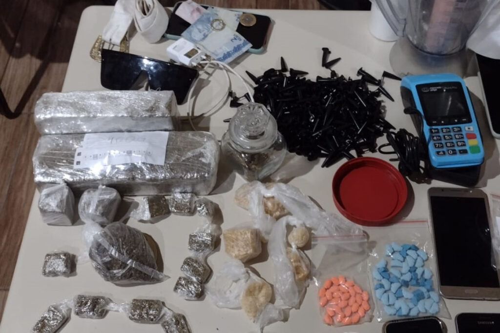 Foi solicitada então apoio para a equipe do Batalhão de Polícia de Rondas Ostensivas de Natureza Especial (BPRONE) com uma viatura. Na residência, os policiais encontraram um homem e uma mulher, maiores de idade, com drogas como substâncias análogas ao crack, cocaína e maconha, e 78 comprimidos de ecstasy, além dinheiro em notas trocadas, balança de precisão, máquina de cartão, plásticos e outros utensílios para fracionamento e comercialização de entorpecentes.