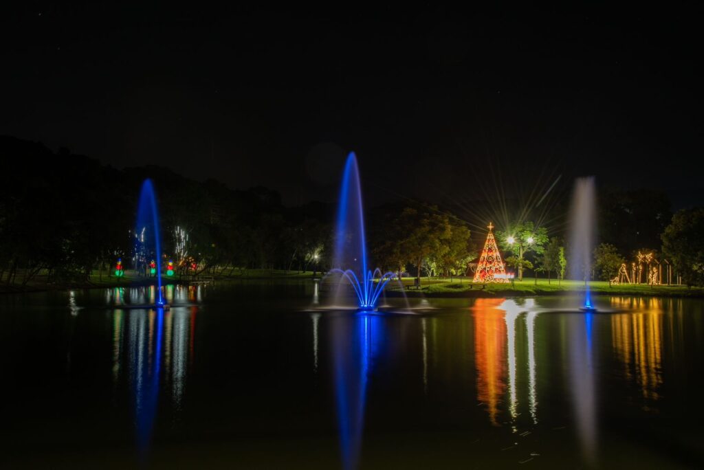 O Parque Municipal da Uva também já ganhou uma iluminação especial com enfeites no Pavilhão de Eventos, no Lago Tumiri e em toda a estrutura do Parque, incluindo a tradicional árvore de Natal.