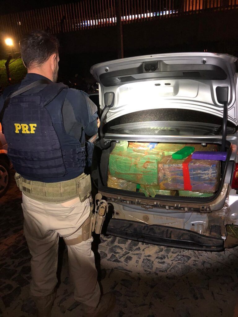 Conforme a PRF, a droga estava dentro de um automóvel VW Jetta, próximo ao Parque Vila Velha, na altura do km 517.