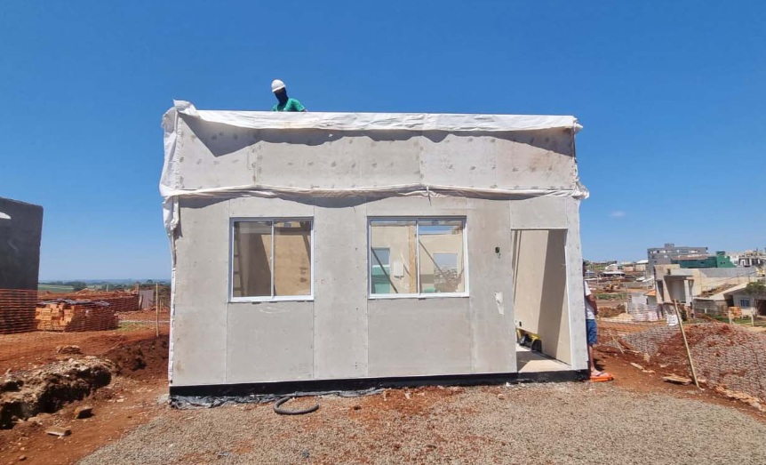 As obras foram iniciadas na última quarta-feira (3) com a fundação rasa, momento em que as instalações elétricas, hidráulicas e de gás já são realizadas. Durante o fim de semana (6 e 7 de dezembro), a estrutura principal da residência foi erguida, com a montagem das paredes, que chegam prontas com esquadrias e demais instalações, e o telhado. O próximo passo são os acabamentos finais, com instalação de cerâmica, pintura, gesso, louças e metais.