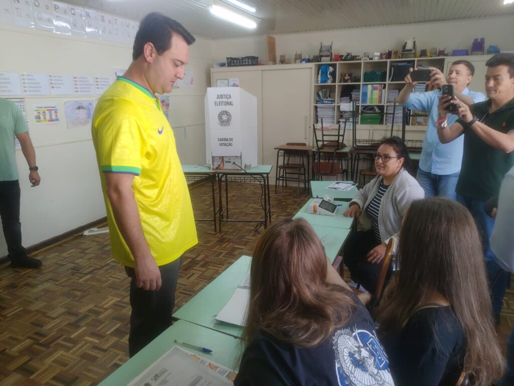 O governador reeleito do Paraná, Carlos Massa Ratinho Junior (PSD), votou com a camisa da seleção brasileira na manhã deste domingo (30), em um colégio no bairro Santa Felicidade, em Curitiba. Em entrevista ao Portal Nosso Dia, ele afirmou estar confiante com uma virada do presidente Jair Bolsonaro (PL), que no primeiro turno ficou atrás de Luiz Inácio Lula da Silva (PT).