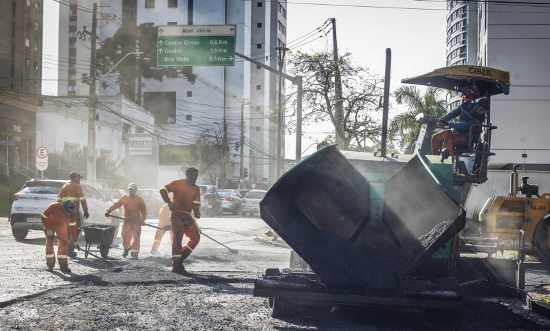 A recuperação da Rua XV de Novembro será feita pelo sistema de fresa e recape, que na primeira fase retira a camada danificada de asfalto para, em seguida, aplicar nova capa de pavimento, feita com asfalto borracha (massa asfáltica que conta com pneus descartados na composição).