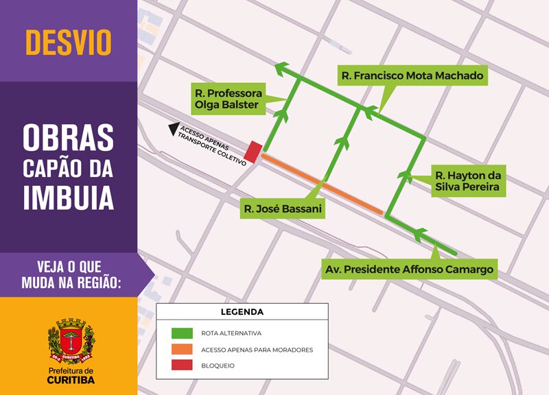 A partir desta quarta-feira (28/1), ruas do Capão da Imbuia terão mudanças no trânsito para as obras do novo terminal de ônibus que será construído no bairro.