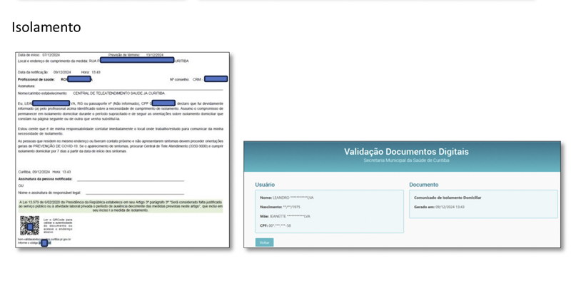Este serviço foi desenvolvido para garantir que documentos emitidos digitalmente pela Secretaria Municipal da Saúde de Curitiba sejam verificados para assegurar a sua autenticidade (conferência de fonte de emissão) e veracidade das informações neles contidas.