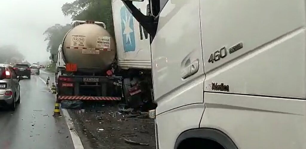 Conforme a PRF, um primeiro acidente aconteceu no km 41,5, envolvendo dois caminhões e sem vítimas feridas. Em seguida, na altura do km 42, um acidente entre três caminhões deixou duas pessoas feridas.
