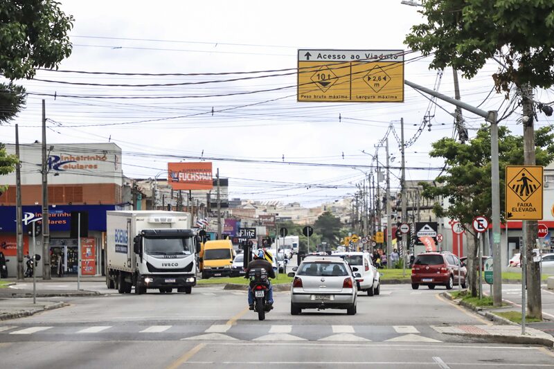 O viaduto que liga os bairros Sítio Cercado e Alto Boqueirão tem fluxo intenso de veículos urbanos, mas o tráfego de veículos pesados é restrito a dez toneladas, sob pena de multa e autuação do motorista que desrespeitar o limite de peso estabelecido para a via.