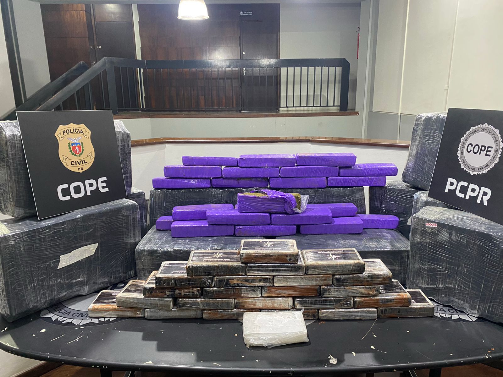 A Polícia Civil do Paraná (PCPR) apreendeu 275 quilos de drogas e prendeu um homem, de 33 anos, em flagrante pelo crime. Com ele, os policiais encontraram 25 quilos de cocaína e 250 quilos de maconha que estavam sendo transportados em um veículo.