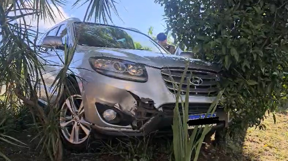 Após o roubo, o suspeito perdeu o controle do veículo e se envolveu em um acidente, abandonando o carro no Parque Margherita Sannini Massini, onde foi localizado pela equipe policial com avarias decorrentes da colisão contra árvores.