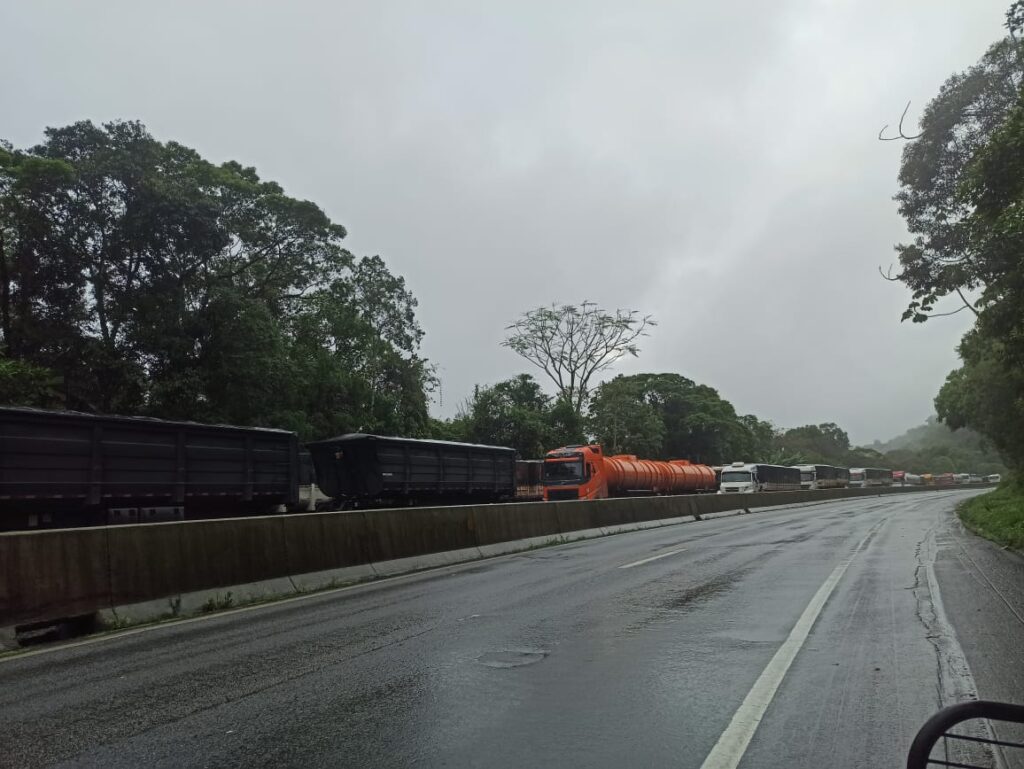 A BR-376 tem bloqueio no km 669 na Serra do Mar, em Guaratuba, Litoral do Paraná, devido a deslizamento de terra que aconteceu no fim de novembro. São 900 metros de pista simples no sentido Curitiba e de duas faixas na ida para Santa Catarina..