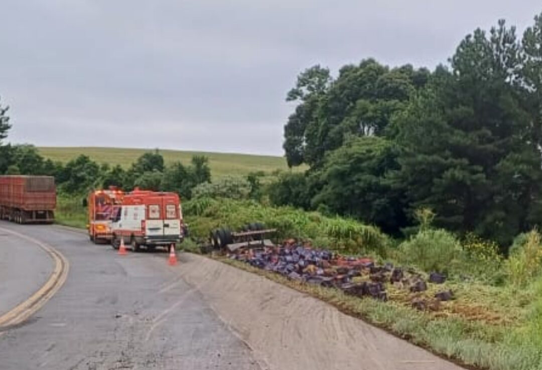 Um tombamento matou um motorista de um caminhão na manhã deste domingo (22) na BR-153, em Tibagi, nos Campos Gerais do Paraná.