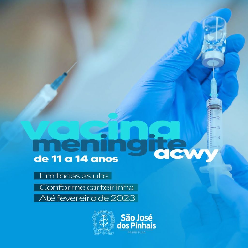 A Secretaria de Saúde de São José dos Pinhais informa que está disponível a vacina contra a Meningite para jovens de 11 a 14 anos.