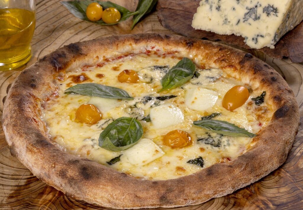 ARMAZÉM COLÔNIA – Burrata com Parma: Pizza de Nápoles Clássica. Massa elaborada com farinha 00 italiana e longa fermentação natural (levain), molho caseiro de tomate, mozzarela, burrata de búfala com flores de manjericão, presunto parma e folhas frescas de manjericão. Rua Vicente Machado, 984 – Batel – (41) 3024-3737 e 9 9818-9428.
