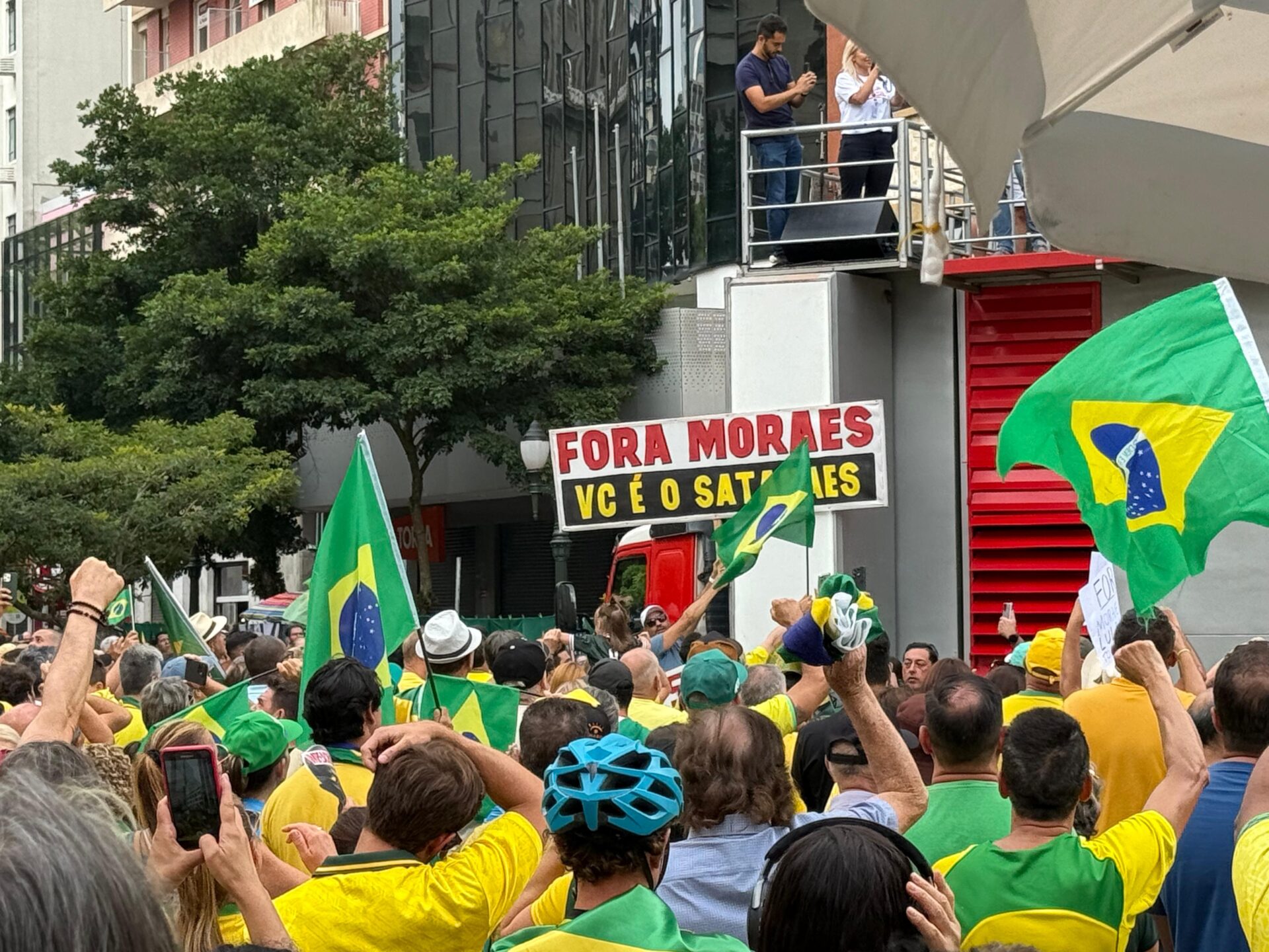 A manifestação do movimento “Acorda Brasil”, realizada na Rua XV de Novembro, na região da Boca Maldita, em Curitiba, reuniu apoiadores vestidos de verde e amarelo e contou com a presença de autoridades políticas da capital e do estado. O ato integra uma mobilização nacional organizada simultaneamente em diversas cidades do país neste domingo (1°).