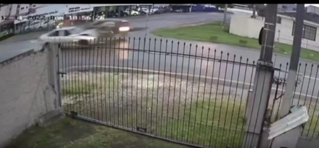 Imagens de câmeras de segurança mostram no momento em que um GM Vectra bate na lateral de um Honda Fit, que seguia com cinco adultos e uma criança. A suspeita é que o motorista do Vectra estava embriagado. (Assista ao vídeo acima)