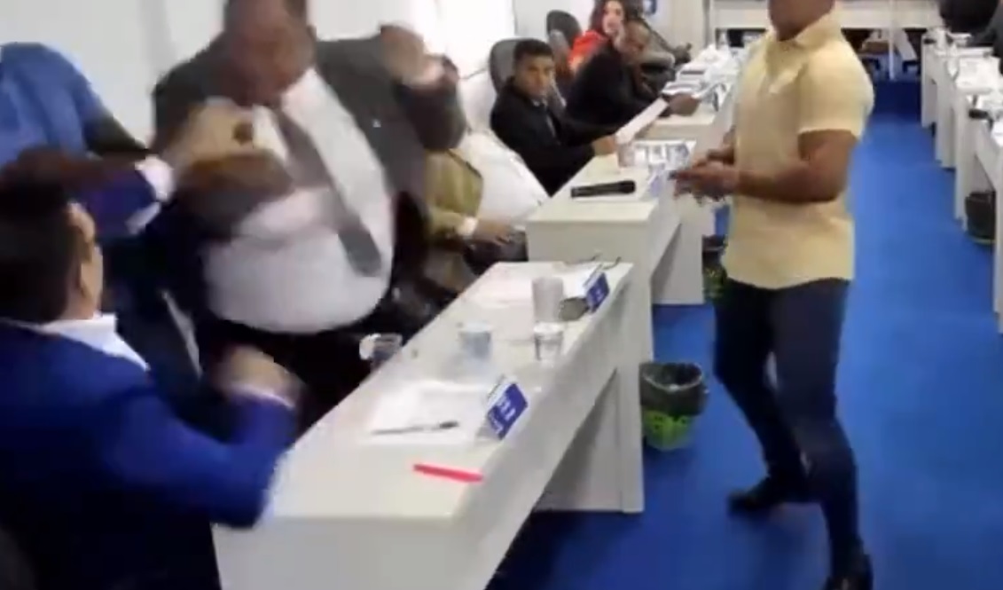 Os dois vereadores discutem e, em seguida, Lopes dá um tapa em Tenóbio, dizendo: “descarado é o senhor”. Eles trocaram socos e tapas e foram contidos por colegas e seguranças.