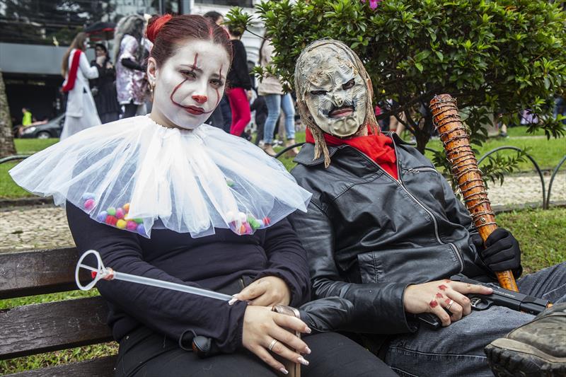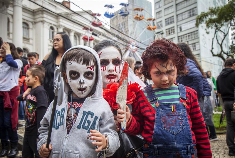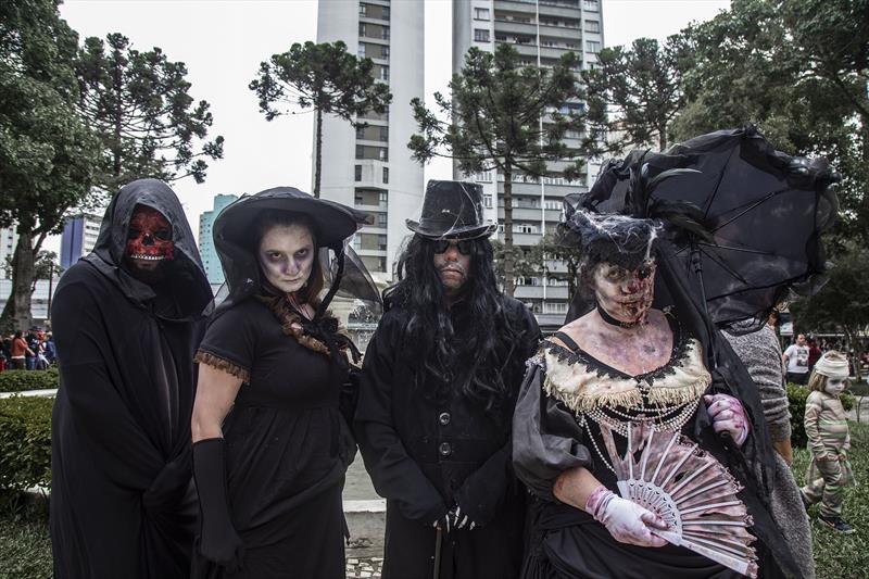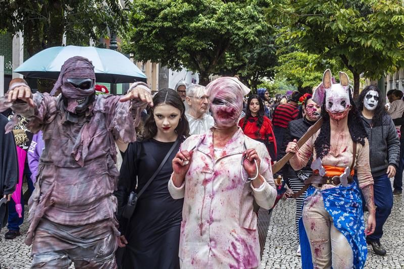 Como acontece há 13 anos, milhares de monstros voltaram a invadir as ruas do Centro de Curitiba, neste domingo (19/2), para brincar o carnaval alternativo do Zombie Walk. O bloco, que foi criado a partir de uma brincadeira entre amigos, saiu por volta do meio-dia da Boca Maldita, percorreu o calçadão da Rua XV de Novembro, e seguiu até a Praça Santos Andrade, onde foi montado um palco para shows de bandas de rock e apresentações de bailarinos com a música Thriller, de Michael Jackson.